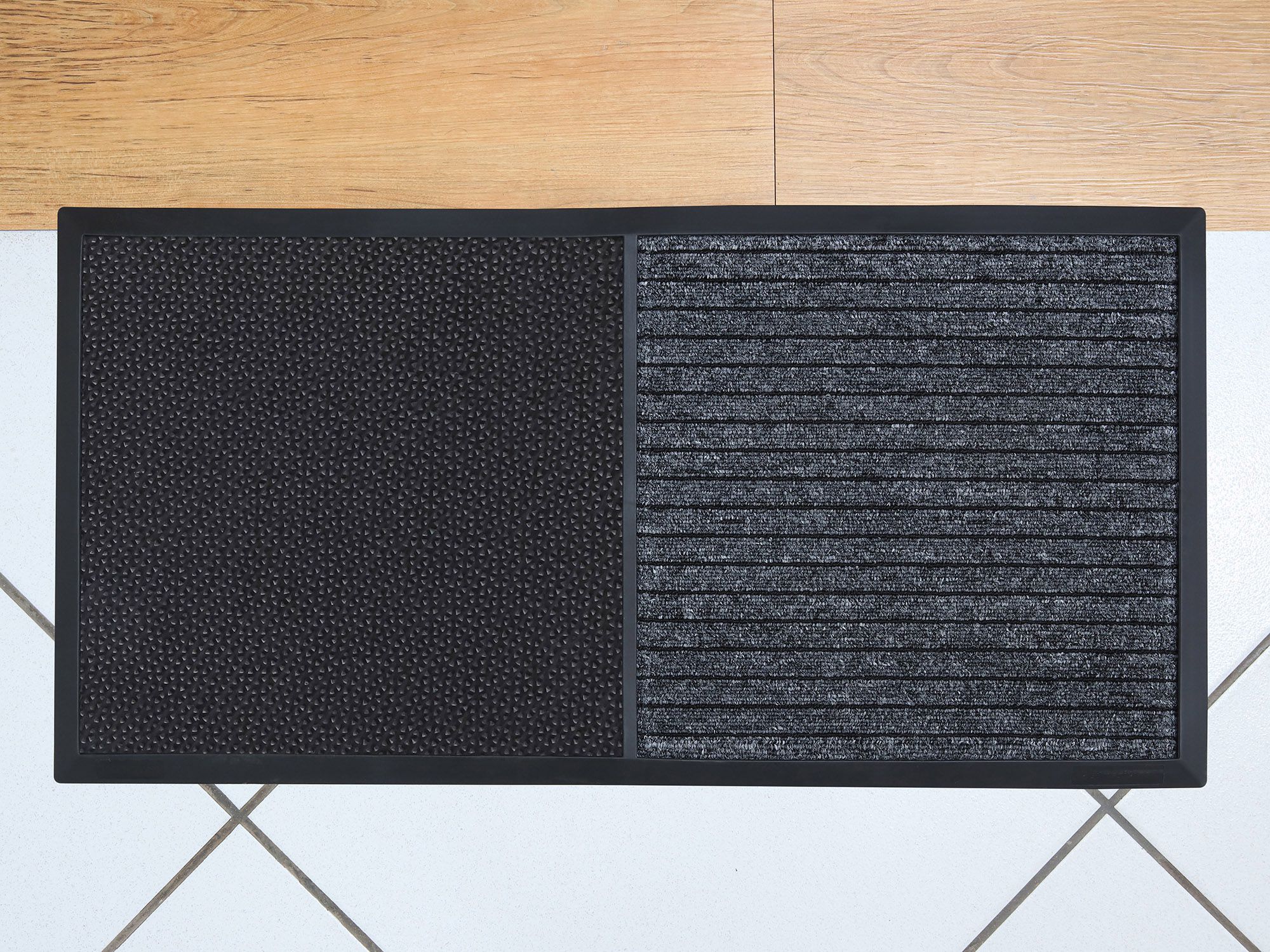 As fibras grandes removem a sujeira, enquanto as menores absorvem o excesso de água. O Tapete Duo contribui para a redução de custos com limpeza e manutenção de ambientes internos.
